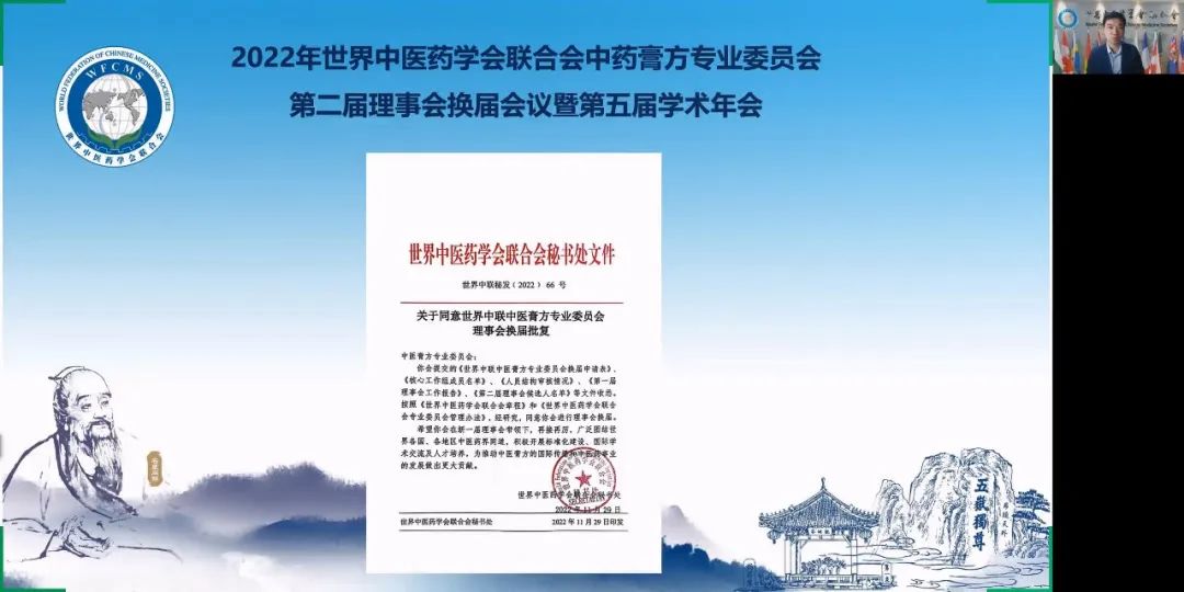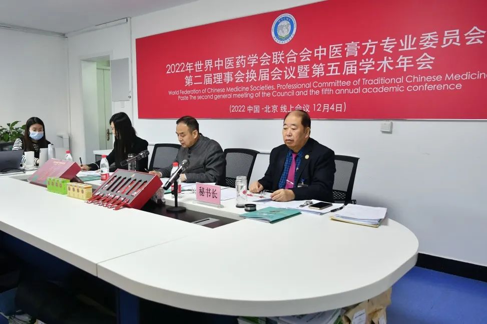 世界中聯(lián)主席馬建中通過視頻方式致辭,向參加中醫(yī)膏方專業(yè)委員會(huì)第二屆理事會(huì)換屆會(huì)議的線上嘉賓表示歡迎。他講到,近年來,黨和國(guó)家高度重視中醫(yī)藥的發(fā)展,出臺(tái)了一系列支持政策,黨的二十大報(bào)告再次強(qiáng)調(diào)“促進(jìn)中醫(yī)藥創(chuàng)新傳承發(fā)展”,這些都為中醫(yī)藥事業(yè)發(fā)展提供了堅(jiān)強(qiáng)保障。世界中聯(lián)是全球最大的中醫(yī)藥國(guó)際學(xué)術(shù)組織,在中醫(yī)藥深入?yún)⑴c全球治理中持續(xù)發(fā)揮著重要作用。在中醫(yī)藥深入?yún)⑴c全球治理中持續(xù)發(fā)揮著重要作用。膏方是中醫(yī)養(yǎng)生文化的精髓,在進(jìn)補(bǔ)方面有深厚的臨床經(jīng)驗(yàn),膏方即可治療慢性疾病又可滋補(bǔ)大病過后的虛弱病體,是兼顧治療和補(bǔ)虛雙重作用的良劑。中醫(yī)膏方專業(yè)委員會(huì)在董瑞會(huì)長(zhǎng)帶領(lǐng)下,在組織學(xué)術(shù)會(huì)議和開展國(guó)際交流、抗擊疫情、科研創(chuàng)新、醫(yī)療幫扶等方面做了大量工作,促進(jìn)了中醫(yī)膏方走向世界,關(guān)注民間中醫(yī)藥瑰寶的挖掘整理,通過政協(xié)提案促進(jìn)民間膏方傳承及其制作工藝的搶救,為保護(hù)民間膏方獻(xiàn)技出力,開展科研課題與臨床實(shí)踐提高藥方、膏方的臨床療效,踐行“療效是中醫(yī)藥生命線”的真理,發(fā)出倡議鼓勵(lì)理事們積極投入抗疫,第一屆理事會(huì)工作取得了突出成績(jī),榮獲了世界中聯(lián)頒發(fā)的“抗擊疫情榮譽(yù)集體”稱號(hào)和2020-2021年度先進(jìn)分支機(jī)構(gòu)三等獎(jiǎng)。希望新一屆理事會(huì)在董瑞會(huì)長(zhǎng)領(lǐng)導(dǎo)下,能夠充分發(fā)揮世界中聯(lián)平臺(tái)優(yōu)勢(shì),繼續(xù)辦好“一帶一路”雁棲湖中醫(yī)膏方國(guó)際高峰論壇,加快膏方相關(guān)標(biāo)準(zhǔn)起草,促進(jìn)膏方產(chǎn)品和市場(chǎng)開發(fā),加強(qiáng)國(guó)際交流交往,助力中醫(yī)藥走向世界。