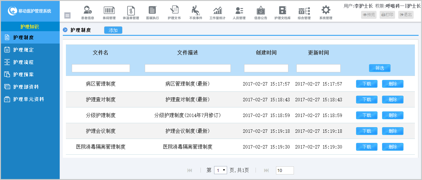 針對醫(yī)院等級評審和日常護理管理需要,系統(tǒng)內(nèi)置6大分類,可以自由上傳、完善文檔,并且可以實現(xiàn)分科室協(xié)同編輯、查看,簡化護理文檔管理工作量。