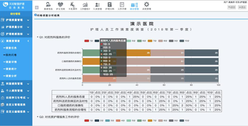 天坦按照國際JCI標準和HIMSS 7級標準,將護理管理關(guān)注點進行梳理、歸納、整合,將住院病房、護士工作站、護理部、醫(yī)院信息系統(tǒng)4大場景互聯(lián)互通,實現(xiàn)數(shù)據(jù)傳輸及時性、準確性,利用對各項數(shù)據(jù)的挖掘,生成各種統(tǒng)計報表,為管理者提供科學(xué)分析決策,形成一套安全、有效、完整、流暢的管理系統(tǒng)。