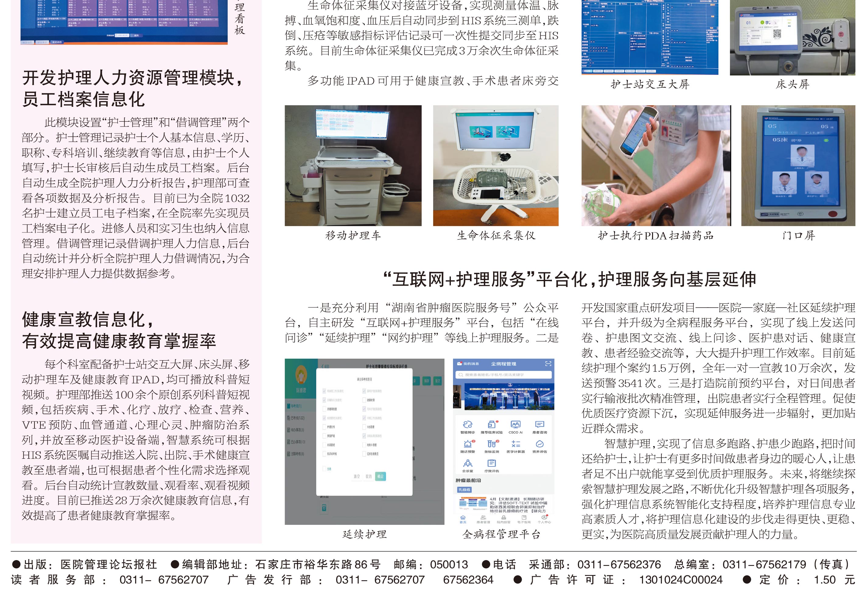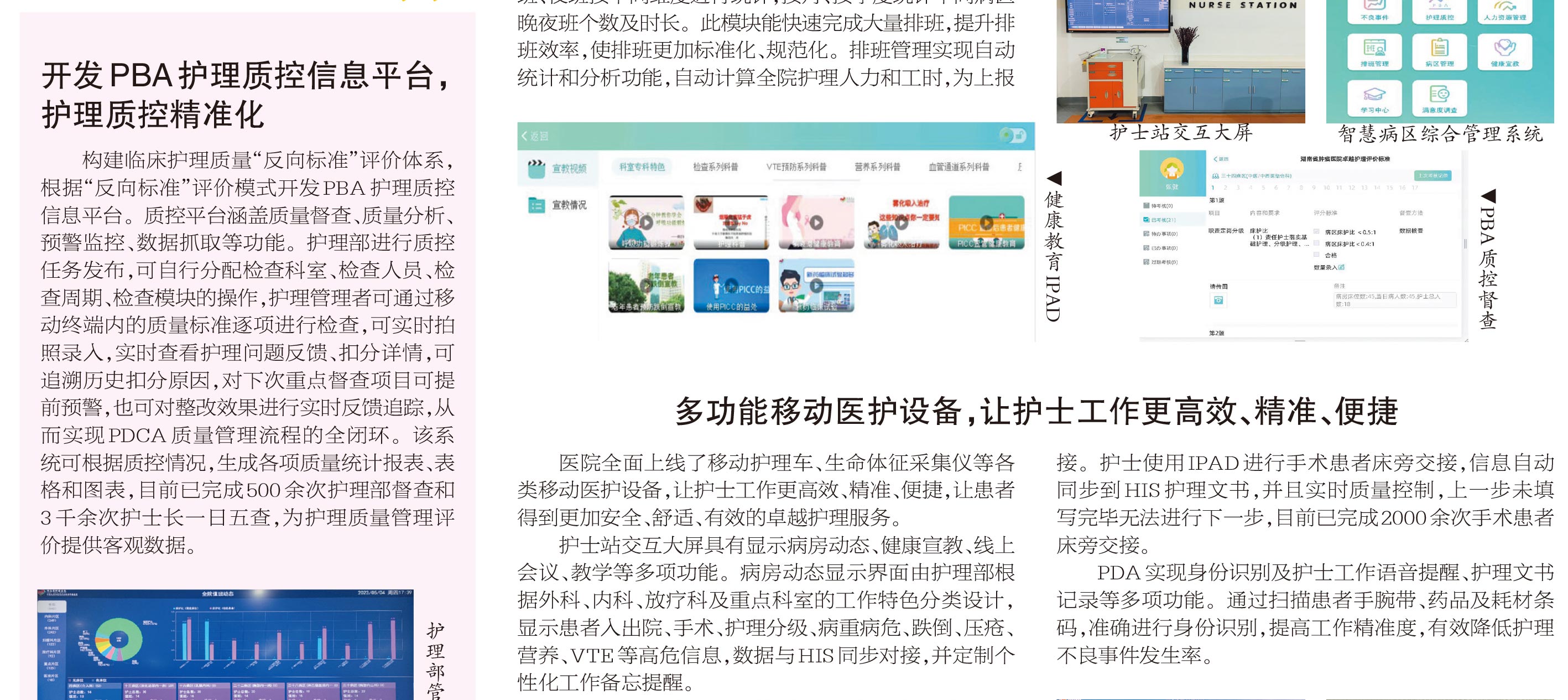 北京天坦智能全面建設湖南省腫瘤醫(yī)院智慧護理,從醫(yī)院頂層設計制定“智慧病房”建設項目,深耕細作開發(fā)出集護理管理和臨床服務為一體的智慧病區(qū)綜合管理平臺,為臨床提供便捷、精準、高效的信息系統(tǒng)支撐,實現(xiàn)護理質控精準化、護理管理數(shù)據(jù)化,促進醫(yī)院護理高質量發(fā)展。